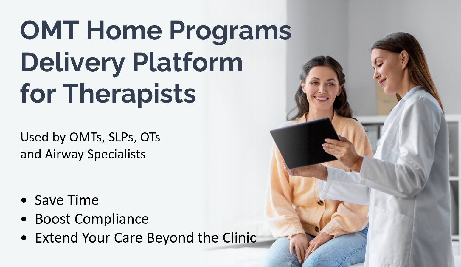 Learn Myo is a Digital Home Exercise Program Delivery System combining cloud-based tools with OMT-developed exercise videos to help professionals deliver guided Myofunctional Therapy at home.